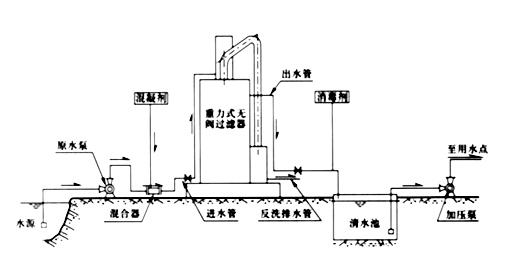 重力式循環過濾設備的工作溫度及環境條件可滿足招標文件要求,室內外溫度0℃~50℃,可在濕度100%的條件下、腐蝕性鹽霧中長期正常運行。全部進水口、回水口、管道、閥門、全部水處理設備均使用白色給水UPVC材質制成,潔白、美觀、大方、無腐蝕。從根本上解決了出水銹的問題,和每年都要定期維修的問題。水處理系統的使用期可以達到40年以上。水質完全可以到甚至優于國家規定的水質要求。