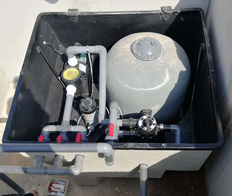 沒想到一個游泳池需要這么多設備,那項目預算有限,也沒地方建機房怎么辦?泳池一體化水處理設備可以完美解決!集過濾、消毒、循環水處理為一體,直接安裝在泳池邊,不用建機房,大大的節約了成本費用與占地面積,過濾精度高達6-15微米,能將水中的細菌微生物徹底過濾掉,保障水質的潔凈健康,就連水下燈都無需安裝,因為過濾器有內置LED高亮節能水下燈,既方便又節能~而且不需要經常換水,只需要及時補充蒸發的水。維護只需要配合必要的消毒(固體氯劑)和清潔維護,設備可自動開機、關機,普通人員只需簡單培訓即可操作使用,根本不需要專人打理。