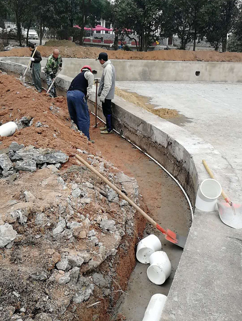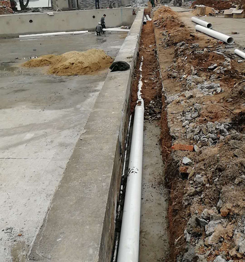 泳池設(shè)備及管道施工由專業(yè)工程人員按標(biāo)準(zhǔn)施工。目前已經(jīng)開始鋪設(shè)管道,具體的泳池鋪設(shè)管道施工圖 如下: